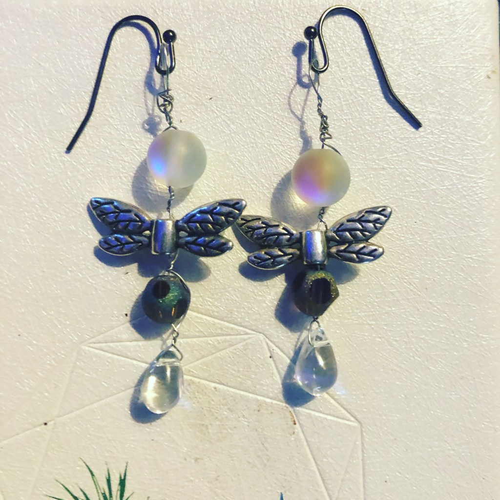 I made these earrings last night. I like to play with crystals, healing stones, and beads.